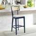 A curved back enriched with woven rattan mesh embraces the body comfortably while a padded cushion ensures a comfy stay. Our barstool features a wood frame enlivened with organic grains to uplift any room with its natural warmth and comfort.