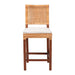 Elevate your kitchen island or bar area with the Lesia Counter Stool, a perfect blend of coastal boho style and everyday comfort. Handcrafted in Indonesia, this stool features a sturdy mahogany wood frame wrapped in natural rattan. Its square backrest with woven detailing highlights artisanal craftsmanship, while the integrated footrest and removable padded cushion provide ergonomic support.