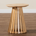 Add a touch of modern elegance to your space with the Caribic End Table. Handcrafted in Indonesia from solid acacia wood, this round end table features a broad tabletop perfect for decor, lamps, or everyday use. Its slatted pedestal base creates a visually light, airy display while ensuring stability and support.