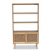 Add timeless style and practical storage to your home with the Faulkner bookcase. Featuring a natural brown finish, this mid-century inspired piece is crafted from durable MDF and pine wood with rattan accents for organic charm.