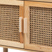 Designed with three open shelves, it’s perfect for displaying books, collectibles, and décor, while the spacious enclosed shelf behind two rattan-front doors offers hidden storage for essentials.