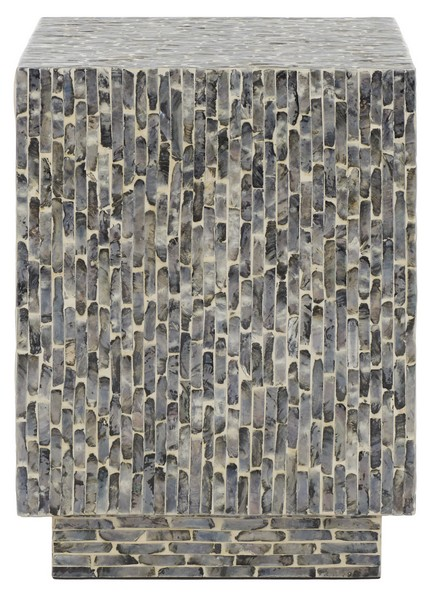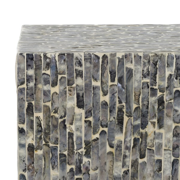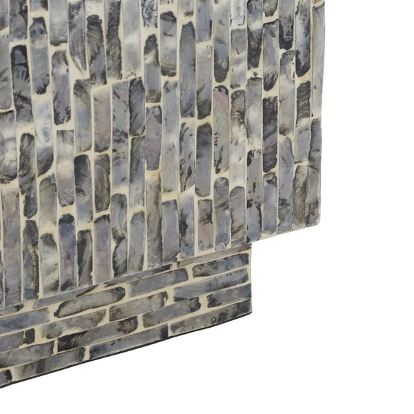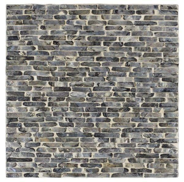 Blythe boasts lavish tonal depth in the jet black tones of its subtly shimmering capiz shell inlay, further enhanced by its eye-catching stepped tile pattern within streaming oversized chevrons.
