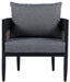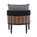Elegant in black and grey tones, each piece is thoughtfully crafted with a sturdy steel frame, complemented by the natural texture of rattan and the soft touch of rope details. Savor the beauty of effortless outdoor entertaining or tranquil lounging.