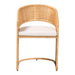 Rustic craftsmanship meets graceful minimalism in the Palm Bohemian Dining Chair. Handcrafted in Indonesia from sustainably sourced natural rattan, this stunning piece combines timeless artistry with everyday comfort. Its curved backrest and sloping armrests create a relaxed silhouette, while the plush foam seat cushion ensures a cozy dining experience.